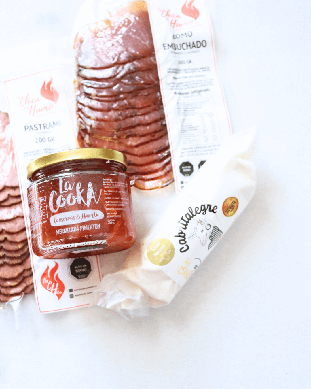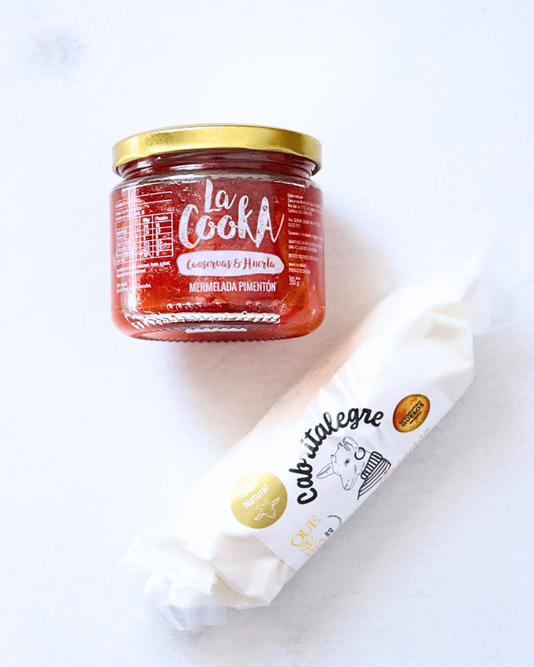 Acompañan de una super dupla una mermelada artesanal de pimientos, hecha por La Cooka, con ese equilibrio justo entre dulzura y picor; y un queso cremoso de cabra Cabrita Alegre, de sabor natural y textura cremosa —un producto único en Chile.